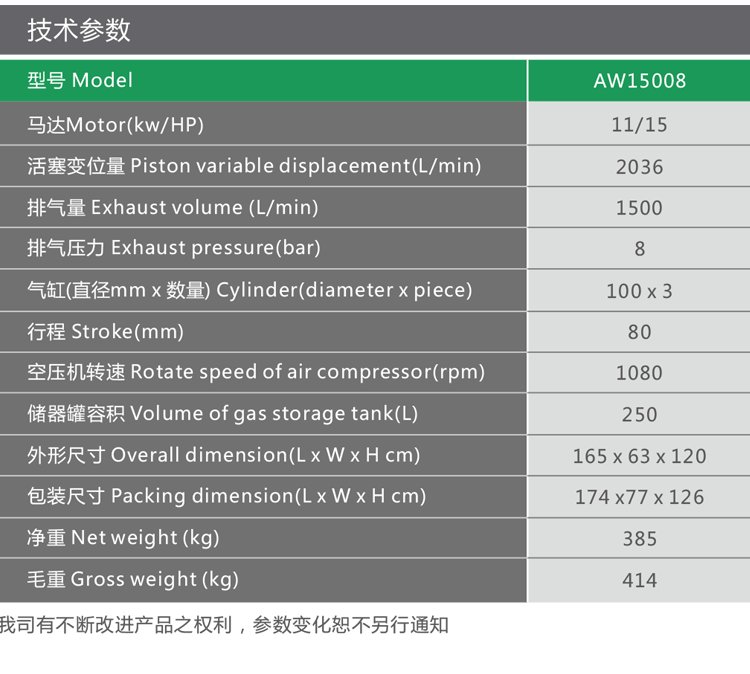 New energy saving and environmental protection AW15008 piston air compressor