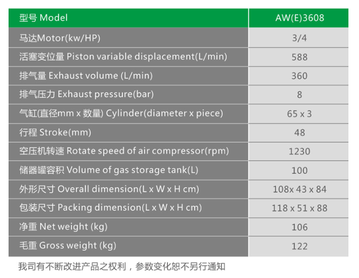 標題:3kW/4HP 新型節能環保活塞空壓機 AW3608